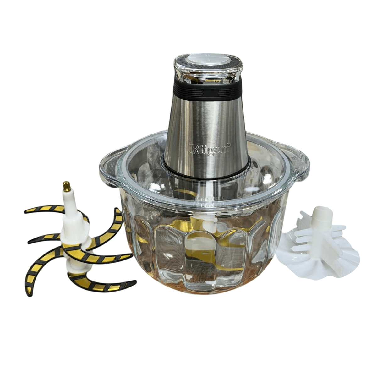 خردکن ۳ کاره روگن مدل Ru-2340 دارای دو تیغهی تیز و مقاوم از جنس استیل ضد زنگ است که با طراحی خاص خود، سرعت خرد کردن و یکنواختی در عملکرد را بالا میبرند. این تیغهها قابل تعویض و شستشو هستند و برای انواع مواد غذایی سبک و سنگین مناسباند.