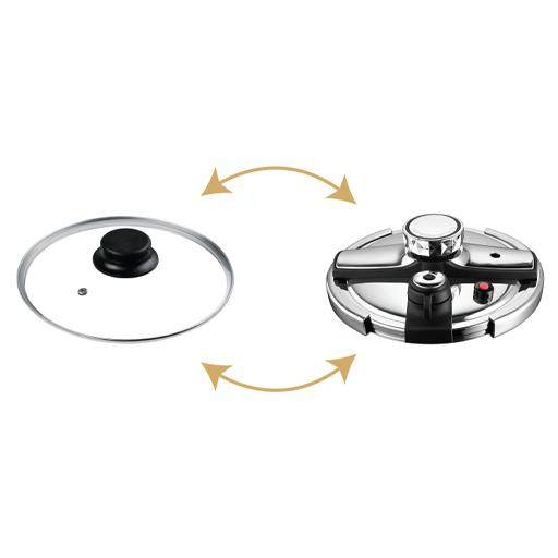 - ✅ دارای دو درب قابل استفاده: یک درب زودپز برای پخت سریع و یک درب معمولی برای استفاده روزمره بهعنوان قابلمه