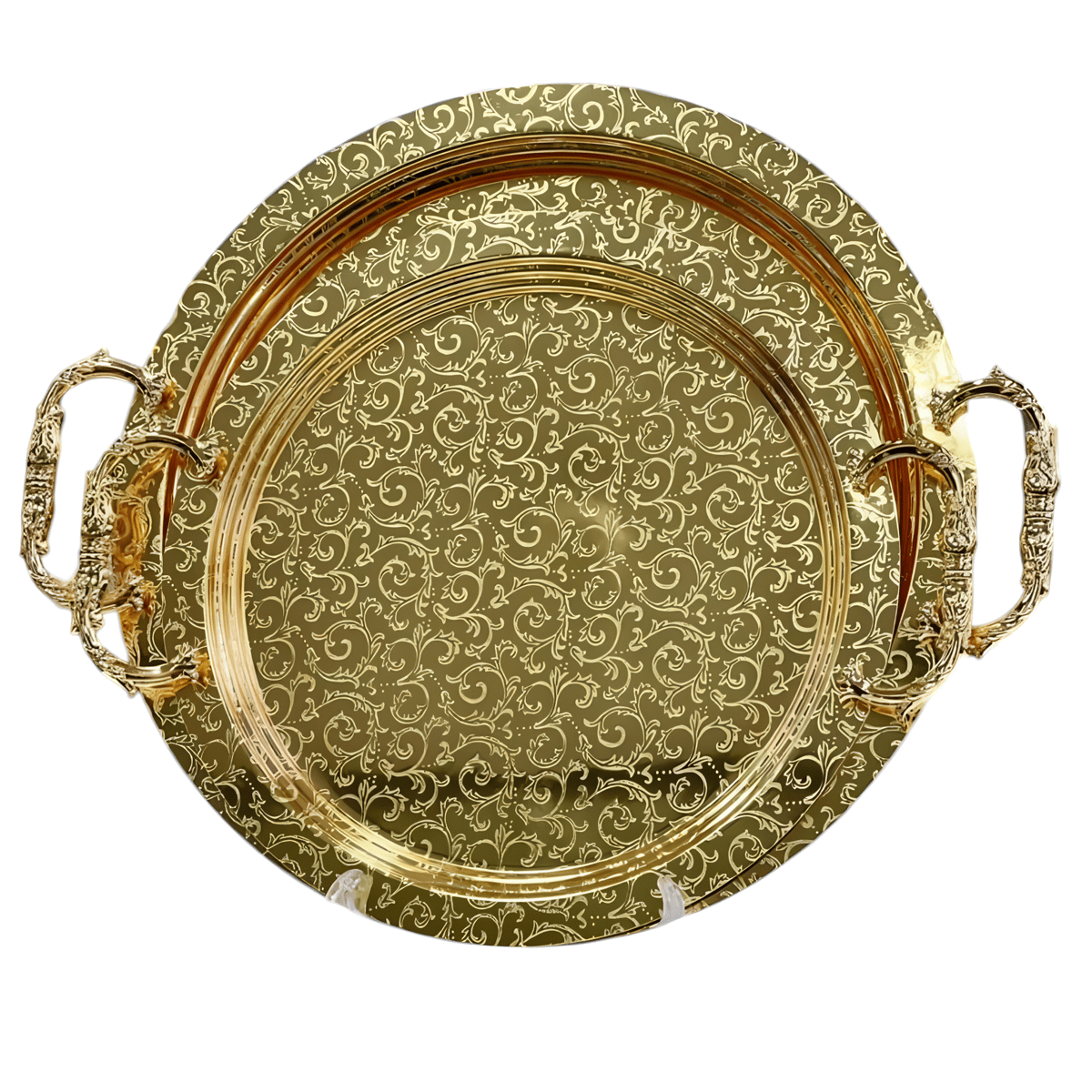 | اقلام | سینی بزرگ با قطر 39 سانتی متر، سینی کوچک با قطر 33 سانتی متر |