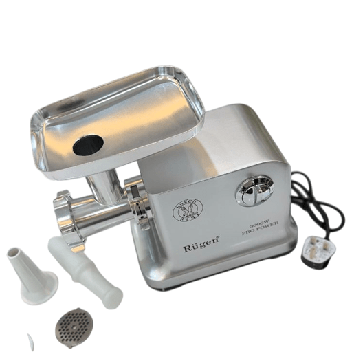 چرخ گوشت روگن مدل Ru-1310 یکی از قدرتمندترین و باکیفیتترین محصولات خانگی برند معتبر روگن است که با موتور پرقدرت ۳۰۰۰ وات واقعی، بدنهای تمامفلزی و طراحی مدرن، گزینهای ایدهآل برای آشپزخانههای حرفهای و خانگی محسوب میشود. این دستگاه با بهرهگیری از گیربکس جدید و کاملاً فلزی، دوام و کارایی فوقالعادهای را در چرخ کردن انواع گوشت قرمز، مرغ و حتی سبزیجات سنگین فراهم میکند.